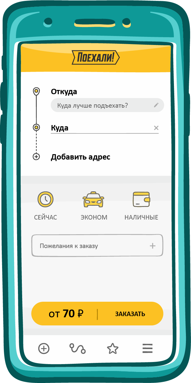 Приложение поможет добраться до нужного места быстро и недорого. Создавайте поездки в любое время суток, выбирайте тариф и пожелание к заказу, следите за движением авто на карте и платите как удобно.